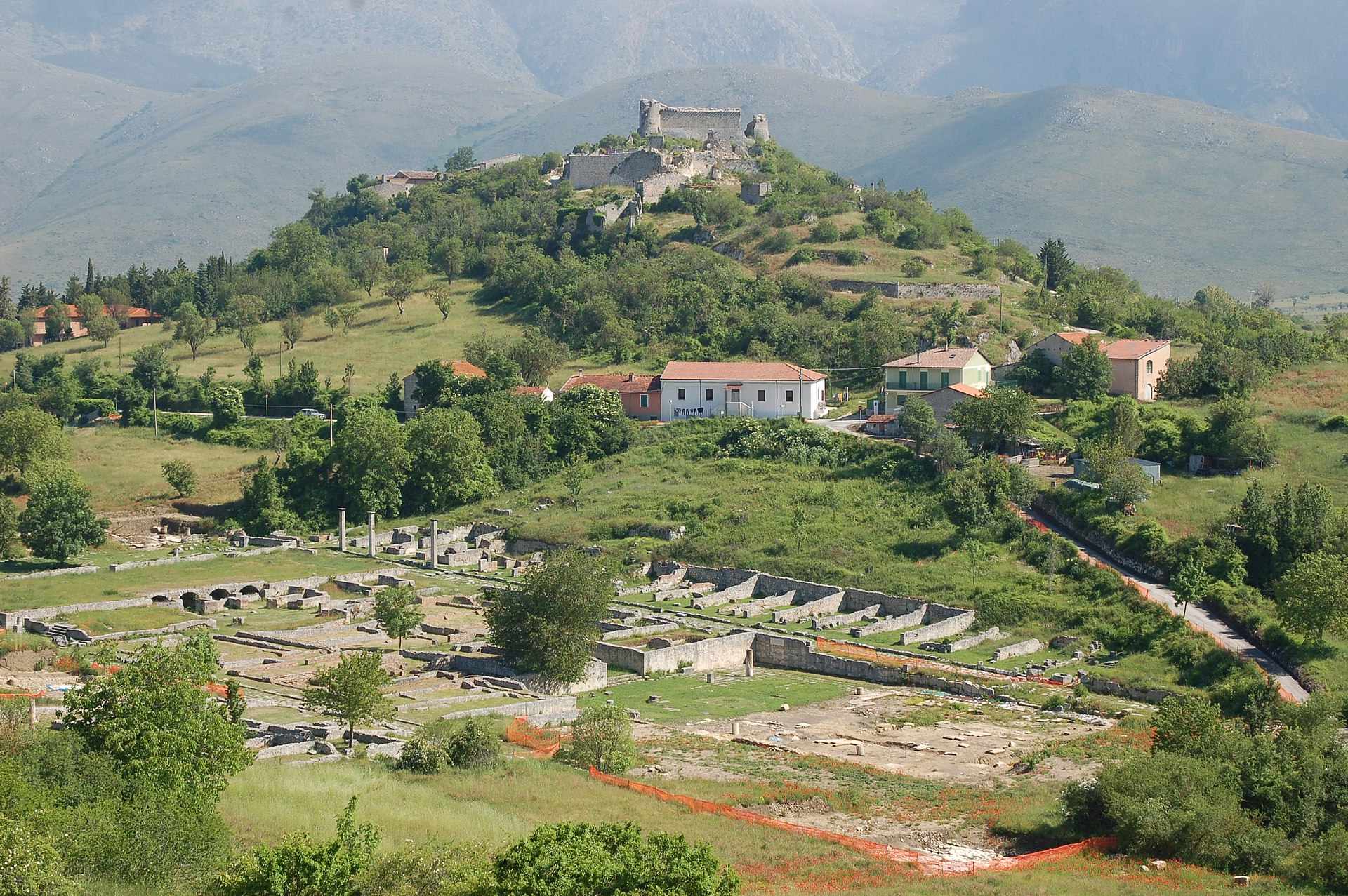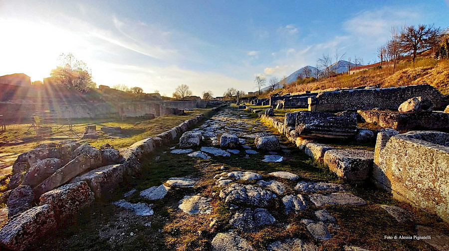 La città romana di Alba Fucens sorge in una piccola valle circondata da tre colline, in un’area occupata dagli Equi, nel territorio a nord-ovest dell’antico Lago Fucino.
